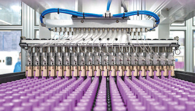 图为浙江省东阳市横店镇东磁高新产业园区的一处车间里,锂电池自动化生产设备正在运转。